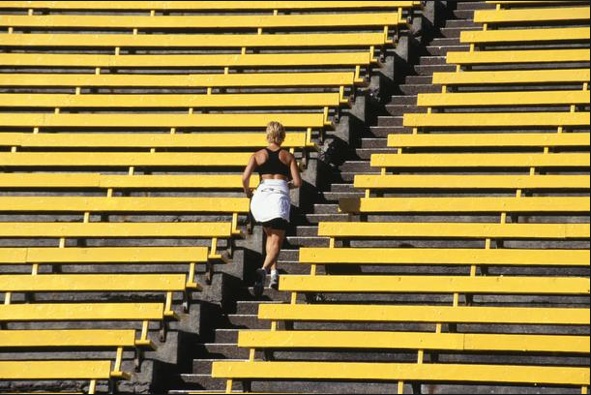 Run up 25 flights of stairs, daily, and your body will increase your metabolic rate, shuffle nutrients into the muscles involved in the effort, increase the pumping volume of the left ventricle of your heart, and produce more endorphins, a group of hormones that interact with the opiate receptors in your brain to reduce your perception of pain and stress.